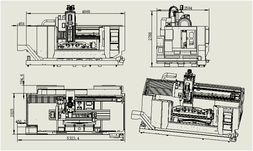 1. SD3050-ZYB-BT40是專門為客戶量身定做的大型3米主軸搖擺式加工中心;天軌式機構;運動方式為Y軸工作臺前后移動,X軸機頭左右移動,Z軸主軸上下移動,B軸搖擺頭±90·旋轉。